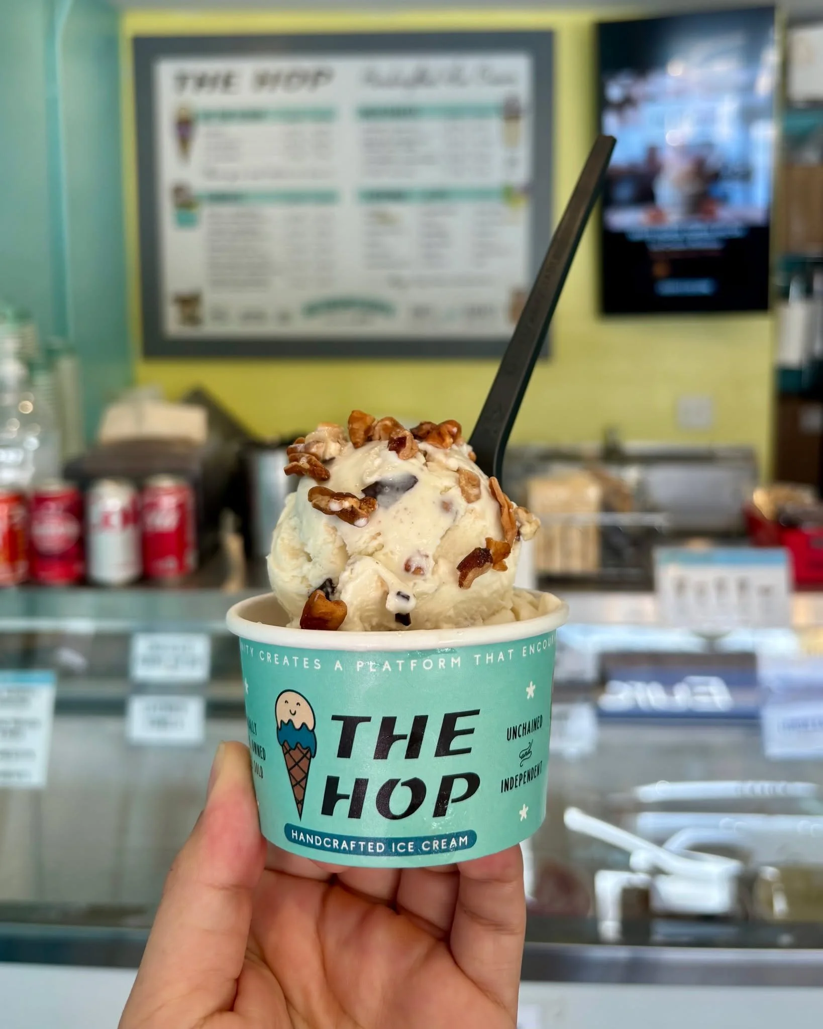 The Hop Ice Cream has been an institution in Asheville, NC since 1978, producing a wide array of imaginative and locally-influenced dairy and vegan flavors. Owners and joy-makers, Ashley and Greg Garrison, became the fifth proprietors of the business in 2008 after having worked as scoopers since 2003 while enrolled at UNC Asheville. The menu features premium quality, locally-crafted dairy and vegan ice cream served in classic milkshakes, sundaes, desserts, and housemade waffle cones. The Hopβs flagship flavors are offered alongside a variety of staples and rotating flavors, creating a menu that weaves an intricate path through the WNC community and foodscape.